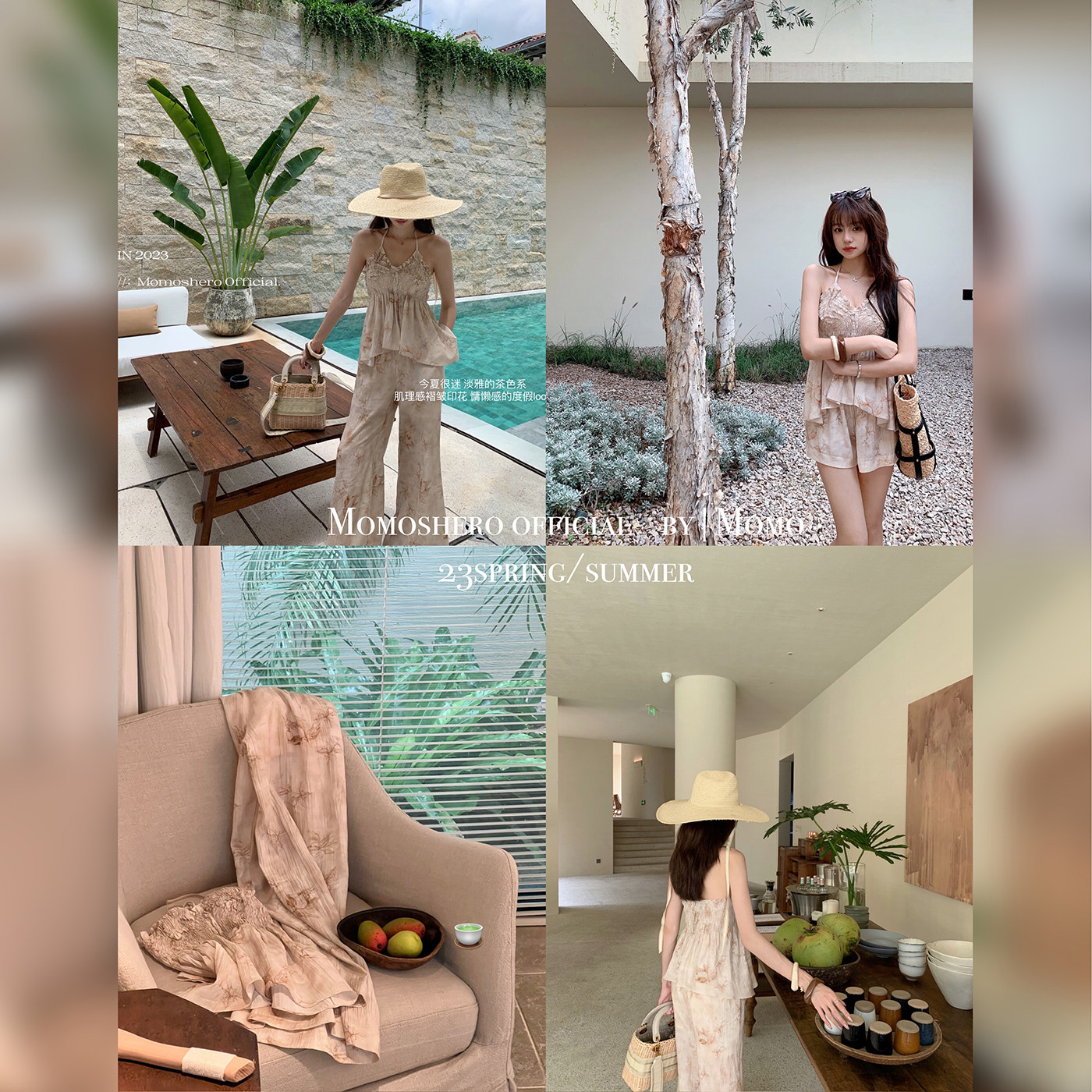 现货momoshero【松茶半岛】肌理感褶皱印花吊带/阔腿裤/短裤系列