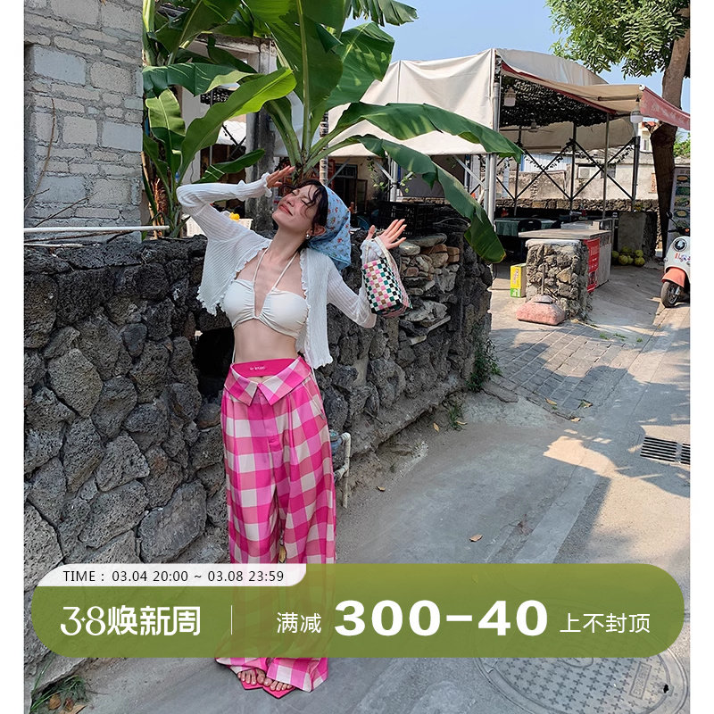 DULA好好家格子阔腿裤女夏季2024年新款高腰显瘦宽松直筒拖地长裤